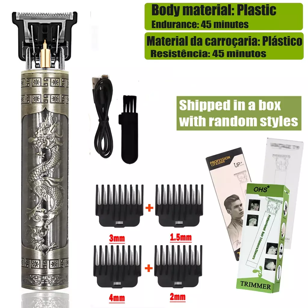 O objetivo principal desta máquina de cortar cabelo T9 é esculpir padrões de penteado e aparar barbas.Não é recomendado usá-lo para cortar cabelos longos.Se você usá-lo para aparar cabelos longos, tome cuidado para não tocar na haste no centro da lâmina ao usá-la, caso contrário ela ficará presa na haste e fará com que os cabelos fiquem presos.No entanto, nossa loja possui um produto para evitar esta situação, nossa''OHS S3''e ''OHS SL2 Dragão Plus''produtos, que vêm com capas de proteção capilar anti-beliscão na lâmina.Você pode comprar este produto.